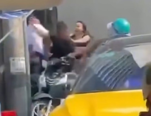 Vụ việc ẩu đả gây náo loạn trên đường Cách Mạng Tháng 8. Ảnh cắt từ clip do người dân ghi lại