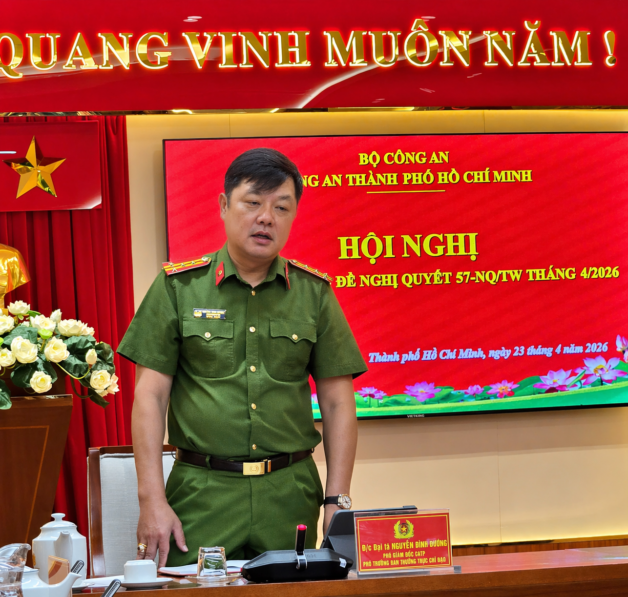 Tại Hội nghị, Đại tá Nguyễn Đình Dương đã biểu dương thành tích, kết quả đạt được thời gian qua của các đơn vị, đồng thời chỉ đạo: Việc số hóa hồ sơ phải làm sao phục vụ tốt nhất nhu cầu của người dân thành phố, xây dựng Công an phường kiểu mẫu với tư duy tập trung, cũng như liên kết với các Bộ, ngành khác một cách tốt nhất. Đồng thời phát triển khoa học công nghệ, chuyển đổi số, cơ sở dữ liệu, tạo lập dữ liệu liên thông…, việc sử dụng dữ liệu nhằm cải cách hành chính để phục vụ người dân, doanh nghiệp tốt hơn.