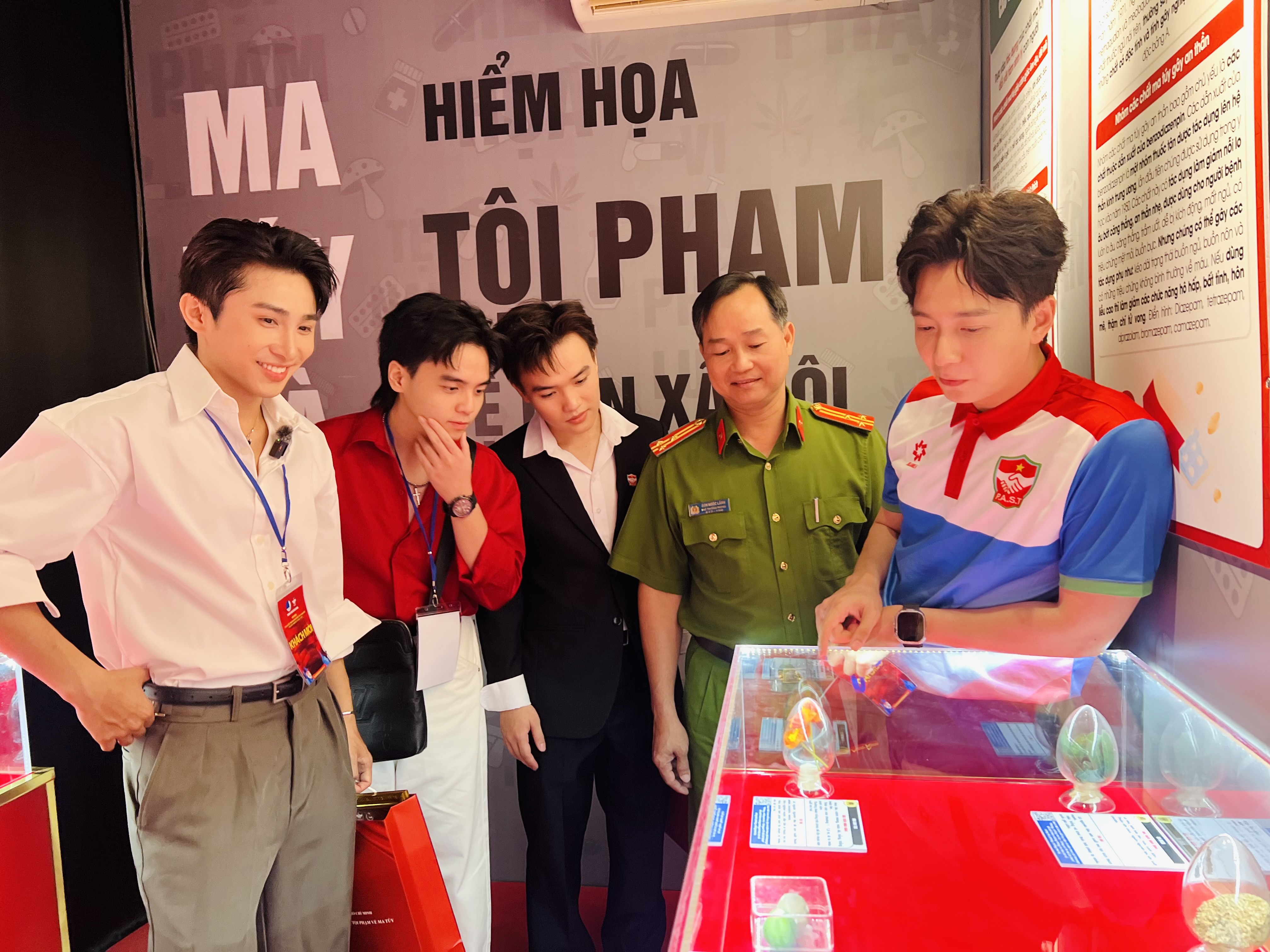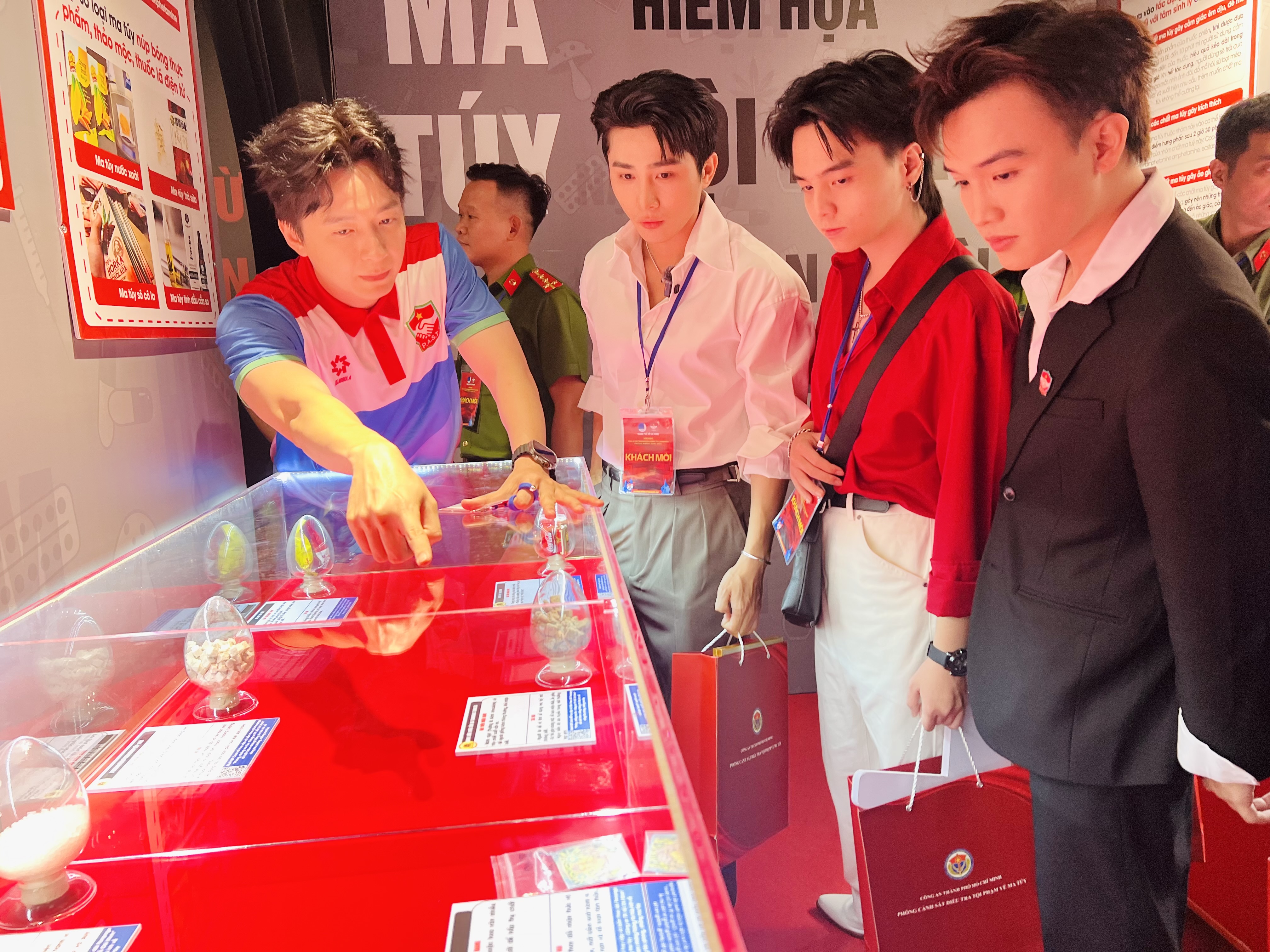 Ban chỉ huy Phòng PC04 cùng Ban chủ nhiệm CLB Tình nguyện Vì bình yên thành phố và các ca sĩ, nghệ sĩ, KOLs tham quan, nhận diện các loại ma túy