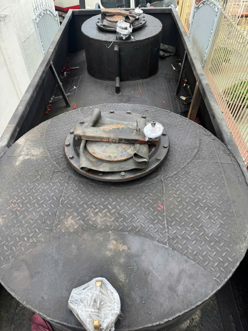 Tại thời điểm kiểm tra, lực lượng chức năng phát hiện Trần Văn Đức (chủ trạm xăng) cùng Lê Thanh Tú (tài xế xe bồn) đang trực tiếp bơm dung môi SPSOL-PEE và cho phẩm màu vào bồn ngầm chứa xăng A95, nhằm tạo màu sắc giống xăng thật để tiêu thụ ra thị trường.