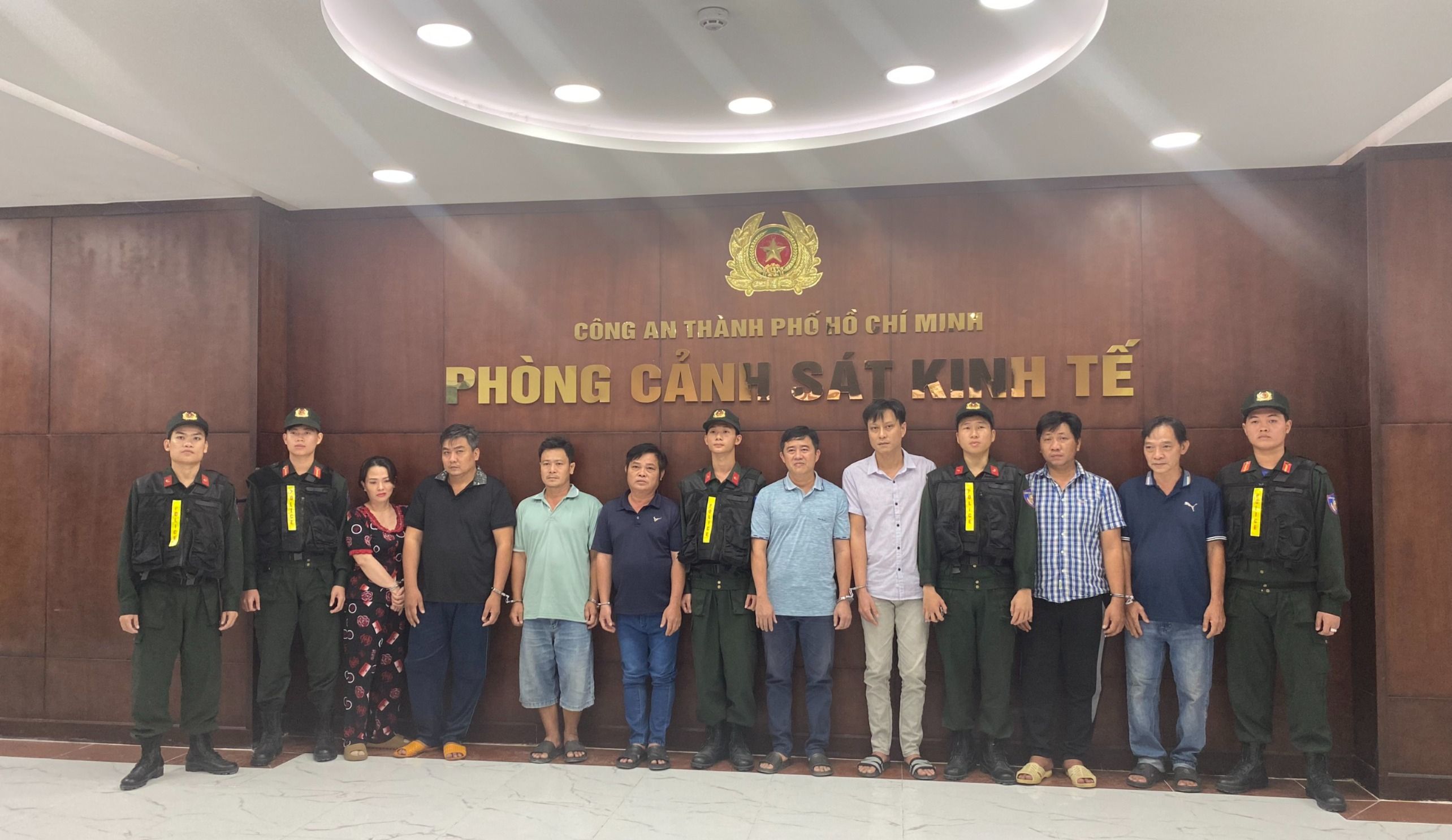 8 bị can gồm: Nguyễn Văn Yên (sinh năm 1980, trú TPHCM), Nguyễn Hồng Hải (sinh năm 1975, trú TPHCM), Nguyễn Tấn Hiệp (sinh năm 1990, trú tỉnh Đồng Nai), Nguyễn Thanh Hải (sinh năm 1982, trú TPHCM), Trần Văn Đức (sinh năm 1971, trú TPHCM), Lê Thị Ngọc Hương (vợ của Trần Văn Đức, sinh năm 1981, trú TPHCM), Lê Thanh Tú (sinh năm 1986, trú tỉnh Tây Ninh) và Phạm Tuấn Dũng (sinh năm 1987, trú TPHCM).