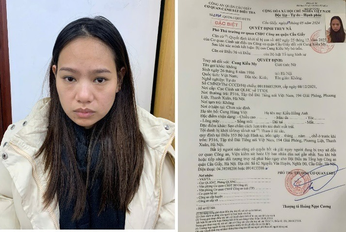 Ngày 17/5/2024, Cơ quan Cảnh sát điều tra Công an quận Cầu Giấy đã ra quyết định truy nã bị can đối với Cung Kiều My.