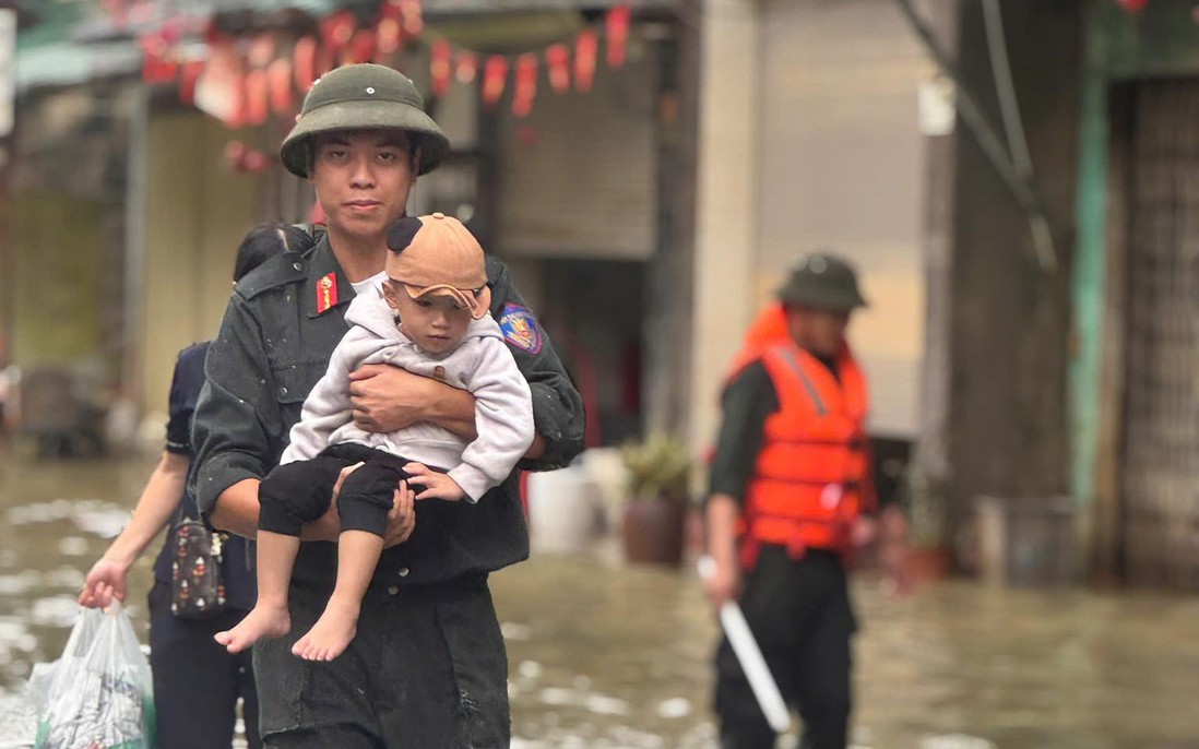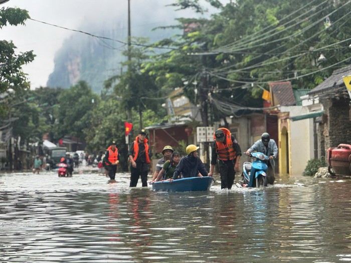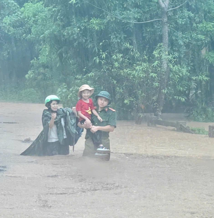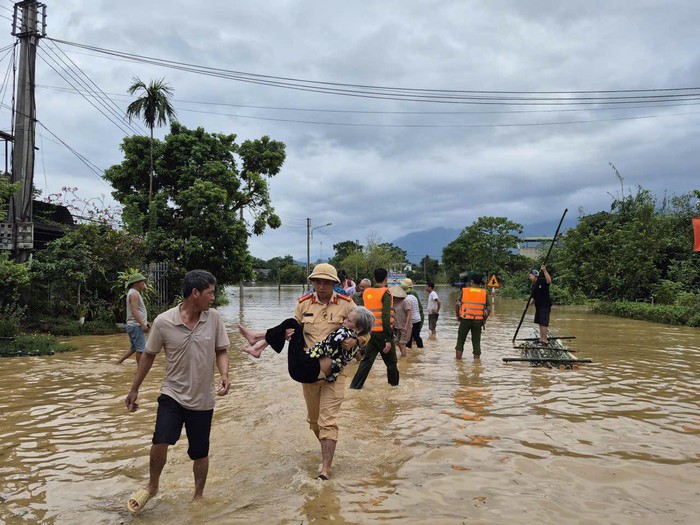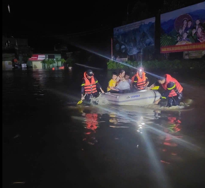 Từ đêm 7 đến sáng 8/10, do ảnh hưởng của bão số 11 gây ra mưa lớn, nước dâng cao rất nhanh đã tràn vào nhà dân ngay trong đêm, lực lượng Công an đã kịp thời cứu hộ người dân.