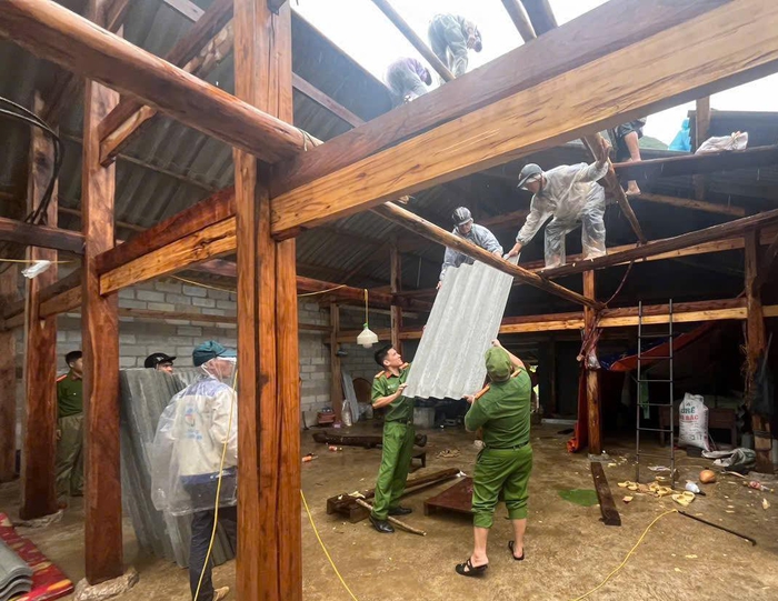 Lực lượng Công an hỗ trợ người dân nhanh chóng sửa chữa nhà cửa sau mưa bão