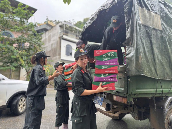 Phòng Cảnh sát cơ động đã kêu gọi các mạnh thường quân, các nhà hảo tâm phối hợp ủng hộ, tổ chức trao tặng trên 300 thùng mì tôm và hơn 200 kiện nước khoáng cho người dân vùng lũ