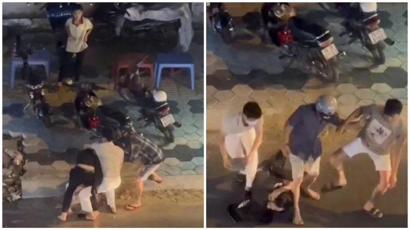Trong nhóm này, có 2 nam thanh niên bị nhiều người khác vây đánh. Lúc cả hai người bị đánh ngã xuống đường, ôm đầu thì liên tục bị nhóm từ 3 đến 4 nam thanh niên khác đánh hội đồng.