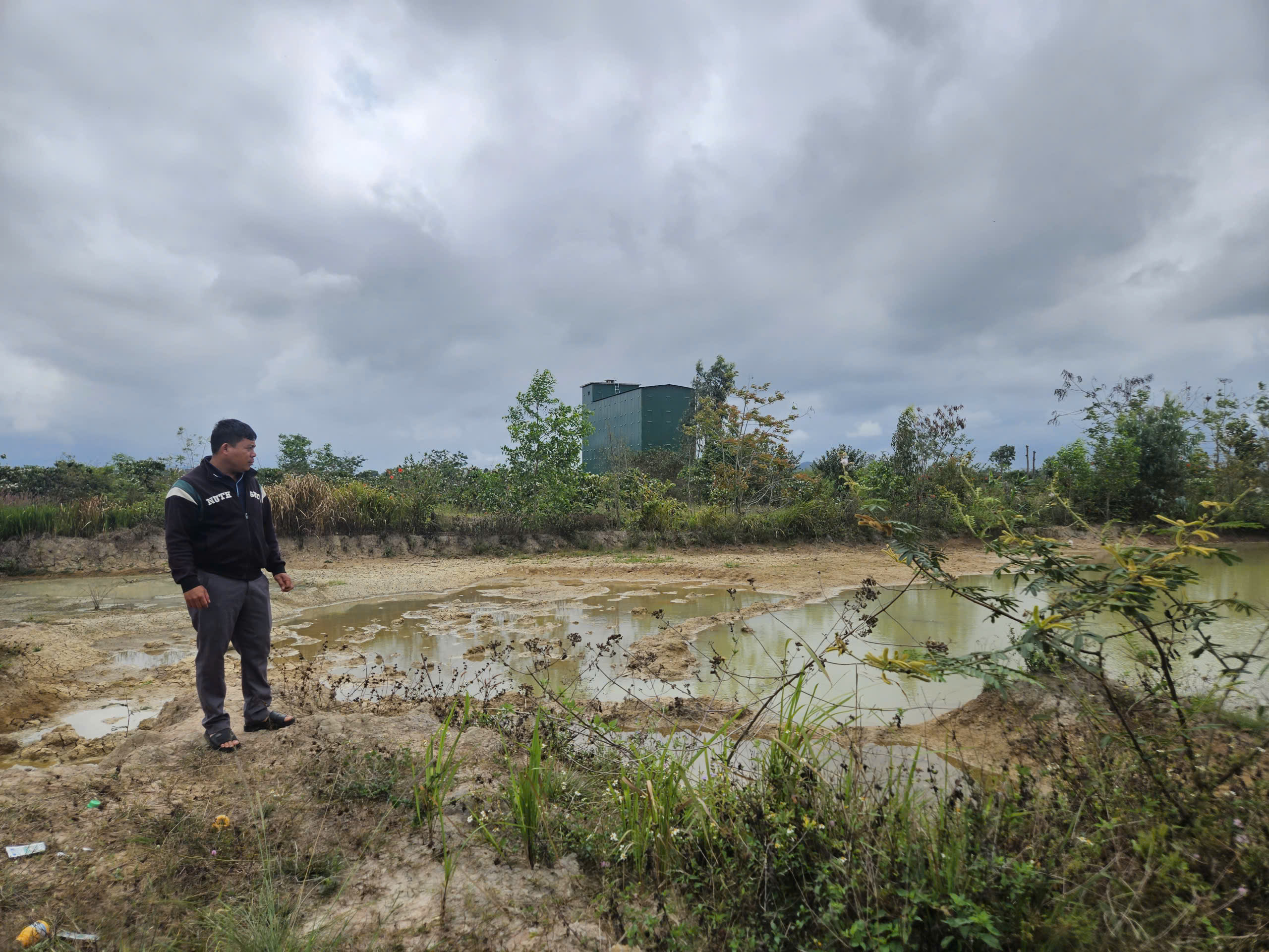 Gần đây, khi trở về kiểm tra, ông Ngụ phát hiện khu đất của mình đã bị đào bới, múc đi khoảng 3.000 m² đất, khiến khu vực này trũng sâu, trông giống như một ao nuôi cá.