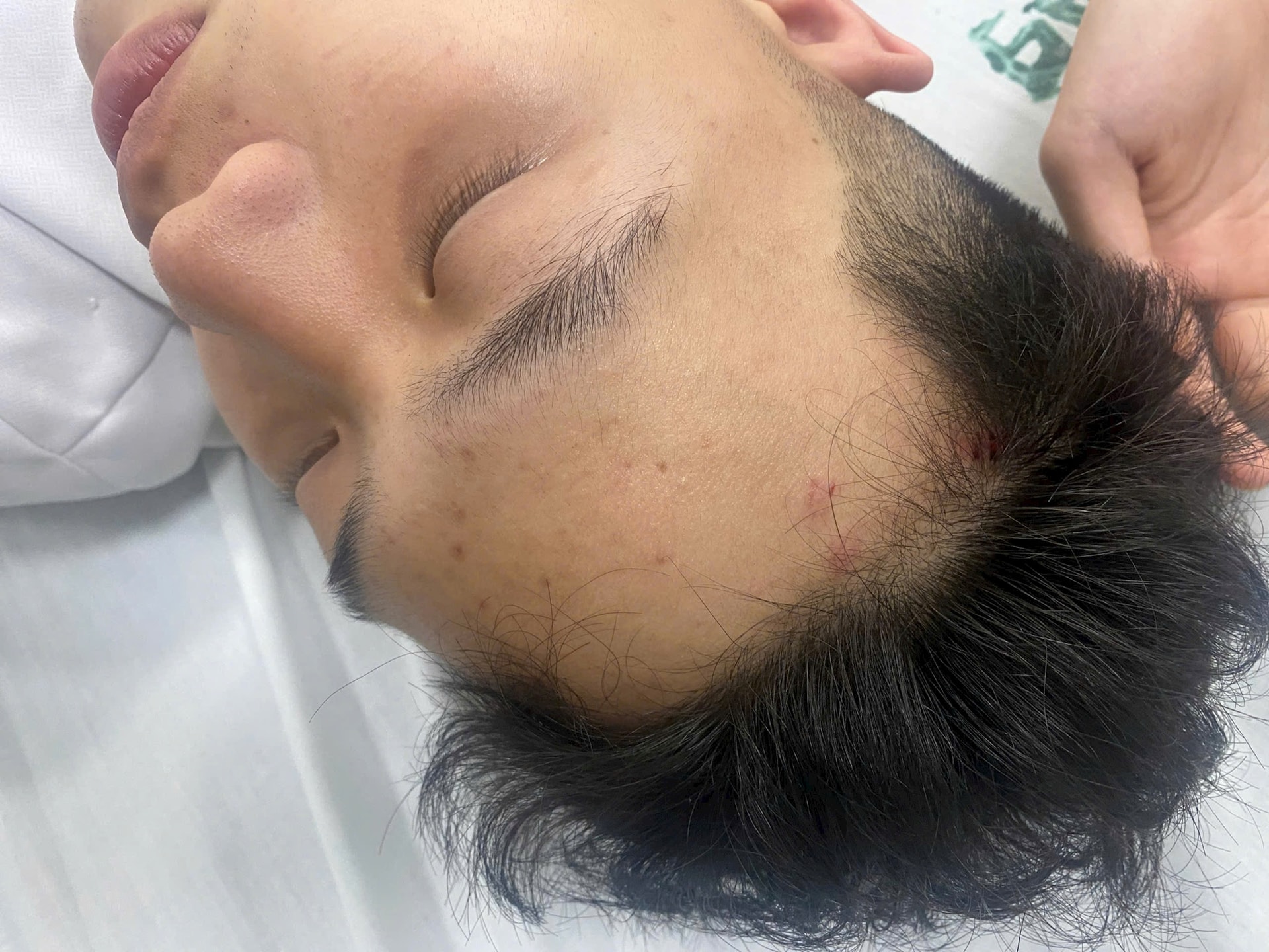 Nam sinh bị hành hung trên đường Nguyễn Khang được đưa vào bệnh viện cấp cứu, tiếp tục theo dõi tình trạng sức khỏe. Ảnh: Đức Tâm