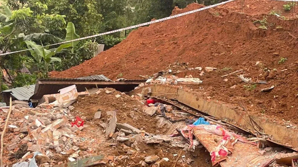 Hôm 25-10, bức tường chắn đất của hộ dân khác đổ sập, đè lên và làm sập nhà của ông Y Ôi, khiến hai cha con ông tử vong.