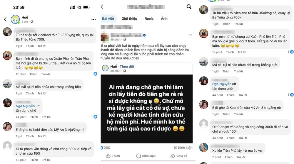 Những ngày qua, trên mạng xã hội lan truyền nhiều thông tin, hình ảnh kèm bức xúc của người dân về tình trạng "chặt chém", nâng giá các dịch vụ cứu hộ, di tản trong lúc mưa lũ đang diễn biến phức tạp tại Huế.
