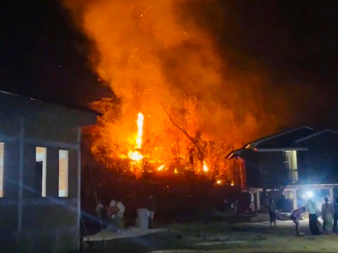 Đám cháy đe dọa khu dân cư tại bản Densavan, huyện Sê Pôn. Ảnh: CA.