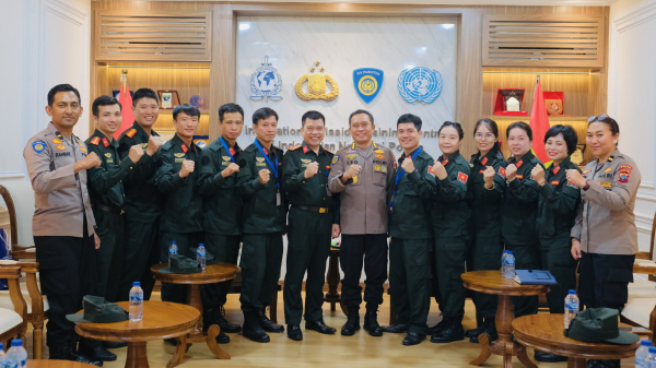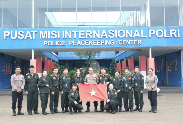 Đoàn các sĩ quan Công an Việt Nam tại Trung tâm Huấn luyện gìn giữ hòa bình Cảnh sát Quốc gia Indonesia.