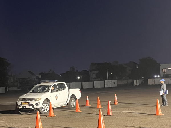 Sát hạch viên Liên hợp quốc đánh giá kỹ năng lái xe của sĩ quan Công an Việt Nam.