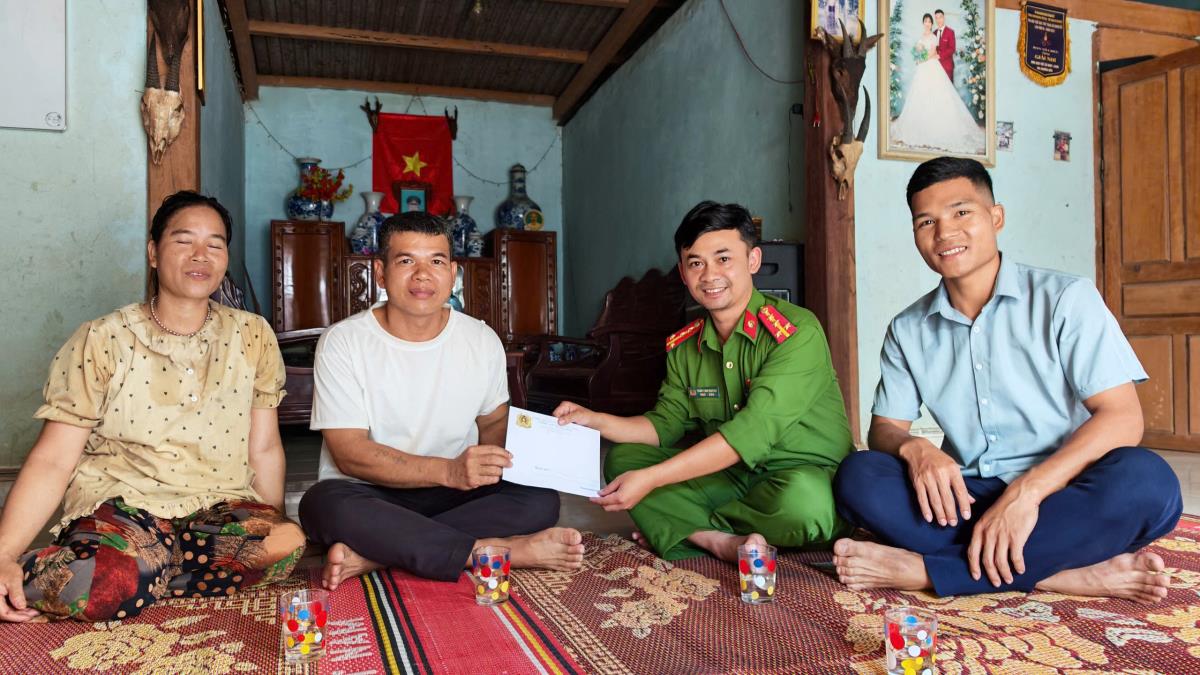 Công an xã A Vương thăm hỏi gia đình một đồng chí trong tổ Bảo vệ ANTT cơ sở tại thôn trên địa bàn