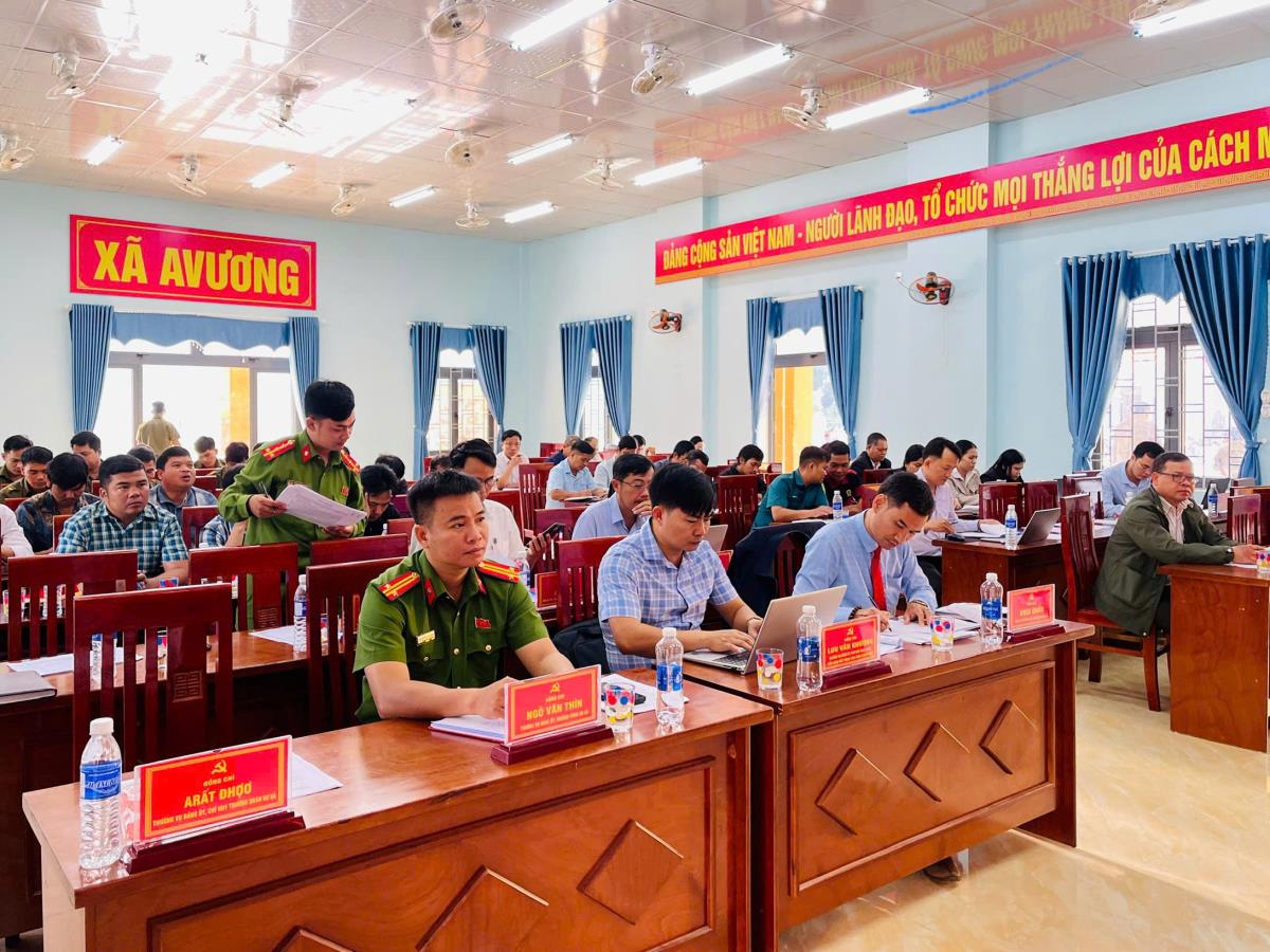 Hội nghị đã đánh giá kết quả các mặt công tác của xã AVương 9 tháng đầu năm đã đạt được nhiều kết quả tích cực. Sau khi sáp nhập, Công an xã AVương đã chủ động tham mưu, phối hợp chặt chẽ với các lực lượng Quân sự và Đồn Biên phòng ANông để đảm bảo an ninh, an toàn tuyệt đối các sự kiện chính trị trọng đại, đặc biệt là Đại hội Đảng bộ xã AVương lần thứ I, nhiệm kỳ 2025 - 2030.