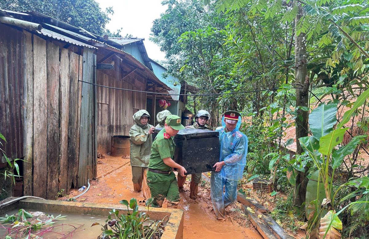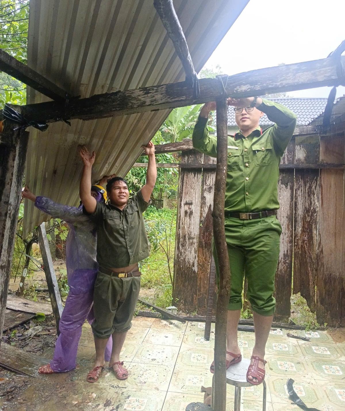 Bên cạnh công tác thăm hỏi, tặng quà, lực lượng Công an xã hỗ trợ người dân vệ sinh nhà cửa, di chuyển vật dụng, gia cố nơi ở tạm thời cho các hộ phải di dời, đồng thời khảo sát thiệt hại, ghi nhận nhu cầu của bà con để tham mưu, đề xuất biện pháp hỗ trợ kịp thời.