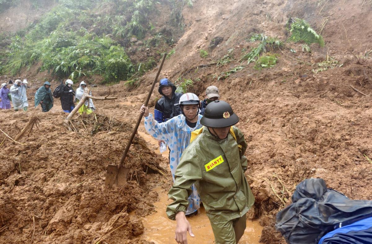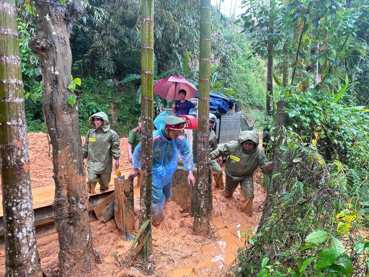 Hai thôn Đang và Atêếp là những địa bàn bị ảnh hưởng nặng nề nhất, đặc biệt thôn Atêếp, nơi vừa xảy ra sạt lở lớn, hàng chục hộ dân phải di dời khẩn cấp. Ngay từ sáng sớm, Công an xã AVương cùng đoàn công tác UBND xã đã phối hợp vận chuyển hàng hóa, gạo, mì tôm, chăn ấm, áo ấm và nhu yếu phẩm thiết yếu vào tận thôn, vượt qua nhiều đoạn sạt lở, bùn đất còn ngổn ngang.