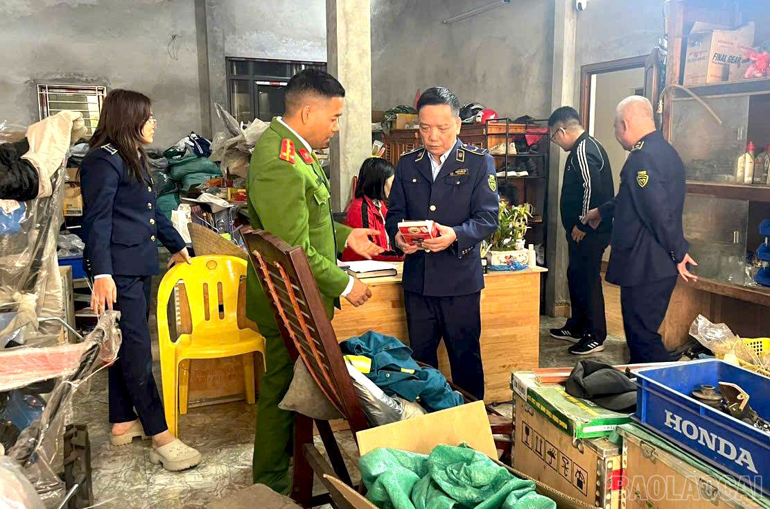 Cùng thời điểm, Tổ công tác tiếp tục phát hiện hộ kinh doanh Phạm Văn Thi (thôn Mường Vi) bày bán các mặt hàng phụ tùng xe máy, gồm: 4 dây curoa, 2 dây ga, 3 má động puli và 4 xích cam, với tổng trị giá hàng hóa khoảng 1,8 triệu đồng. Qua xác minh, toàn bộ số hàng hóa nêu trên được xác định là hàng hóa giả mạo nhãn hiệu.