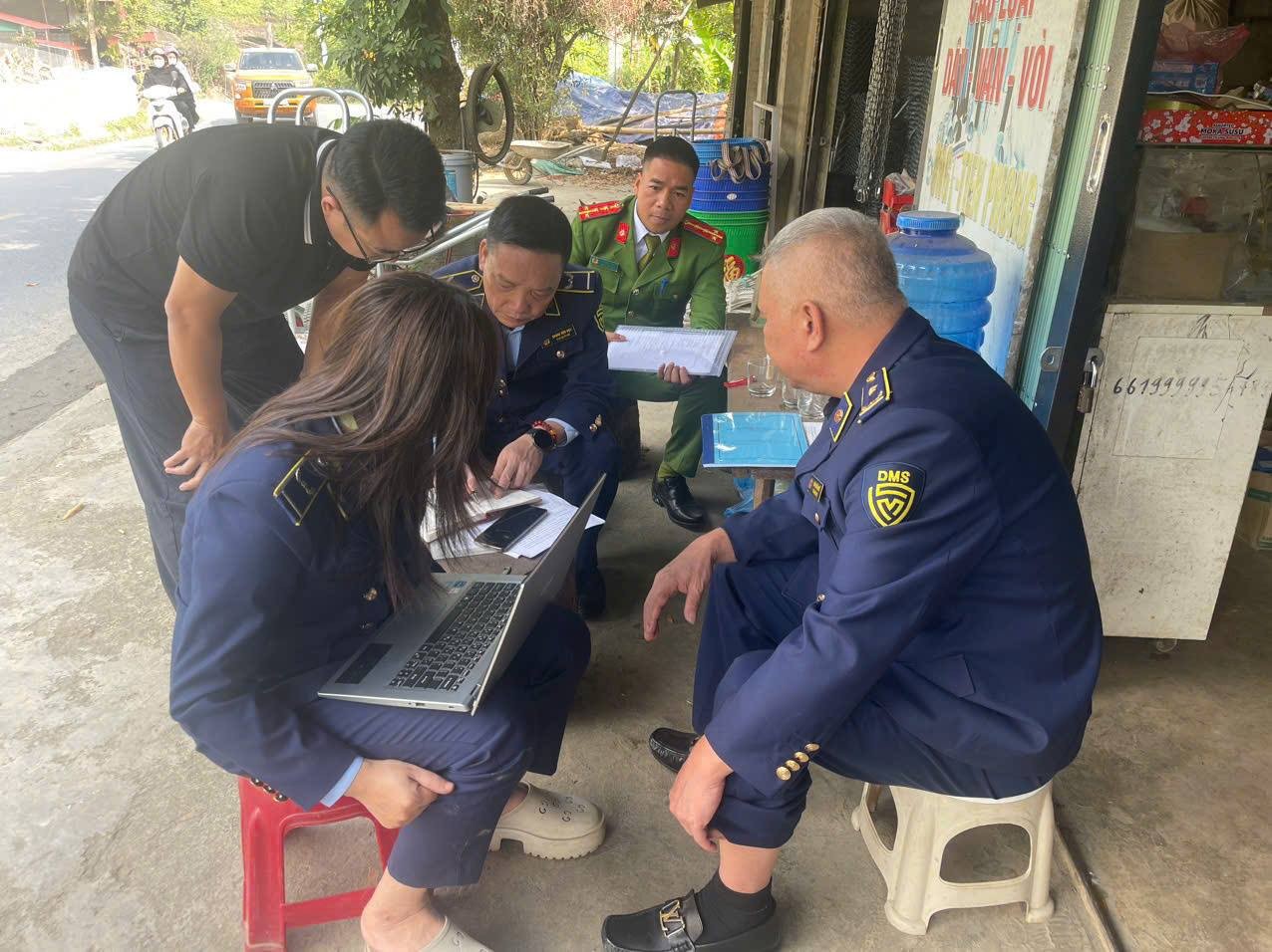 Tổ công tác lập biên bản, tịch thu tang vật và xử phạt hành chính đối với cơ sở vi phạm.