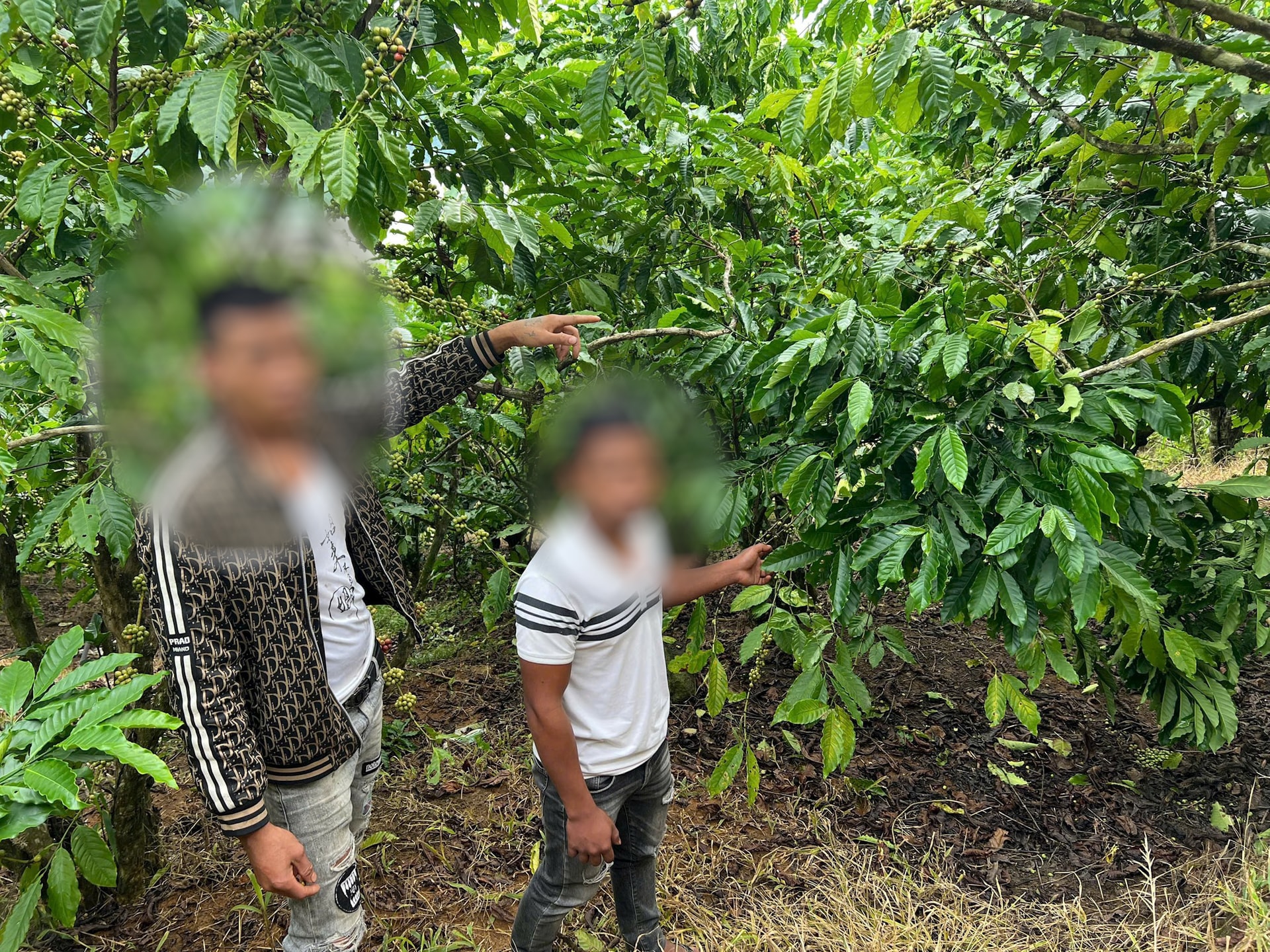 Đối tượng K’ Sáu, K’ Hương tại khu vực trộm cắp cà phê ngày 8/11/2025