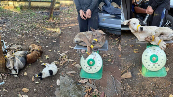 Đến khoảng 4h30 cùng ngày, tổ công tác tiến hành bắt quả tang 4 đối tượng: Vũ Quang Trung, Vũ Thị Huế, Lê Văn Phụng (SN 2000, cùng trú tại thôn 5, xã Đa Kia, tỉnh Đồng Nai) và Phạm Hồng Anh (SN 1983, trú thôn Tân Lực, xã Phú Riềng, tỉnh Đồng Nai). Trung và Huế là các đối tượng tiêu thụ chó, Hồng Anh và Phụng là các đối tượng trực tiếp thực hiện hành vi trộm chó.