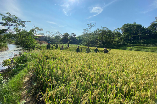 Chiều ngày 5/10, khi dự báo thời tiết cảnh báo cơn bão số 11 sắp đổ bộ vào miền bắc nước ta, trên cánh đồng của gia đình nhà ông Trương Văn Ngự và ông Lự Văn Lượng, tại bản Tắp 1, xã Bảo Hà, các cán bộ chiến sĩ Công an xã và lực lượng an ninh cơ sở đã nhanh chóng giúp 2 gia đình thu hoạch 4 sào lúa trên ruộng.