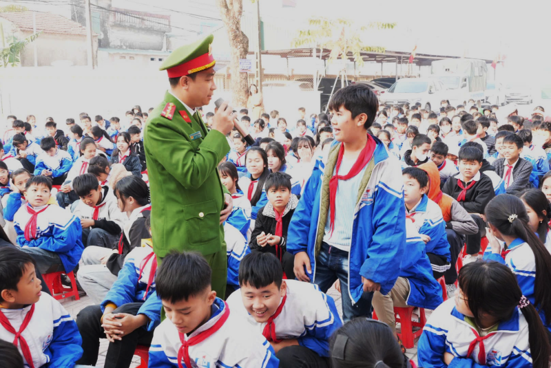 Tại buổi tuyên truyền, cán bộ Công an xã Hoằng Tiến và lực lượng Bộ đội Biên phòng đã trực tiếp trao đổi, hướng dẫn các nội dung pháp luật bằng hình thức ngắn gọn, dễ hiểu, sát với thực tiễn đời sống học đường, giúp học sinh nâng cao nhận thức, ý thức chấp hành pháp luật và kỹ năng phòng ngừa các nguy cơ mất an toàn.