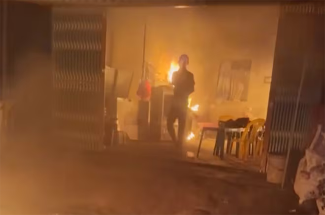Tại hiện trường là một cảnh tượng hỗn loạn, Nguyễn Văn Bắc (SN 1990, trú tại Hà Nội) đã châm lửa đốt xe điện, xe máy, phóng hỏa đốt đồ đạc, đồng thời cầm theo hung khí cố thủ trong nhà.