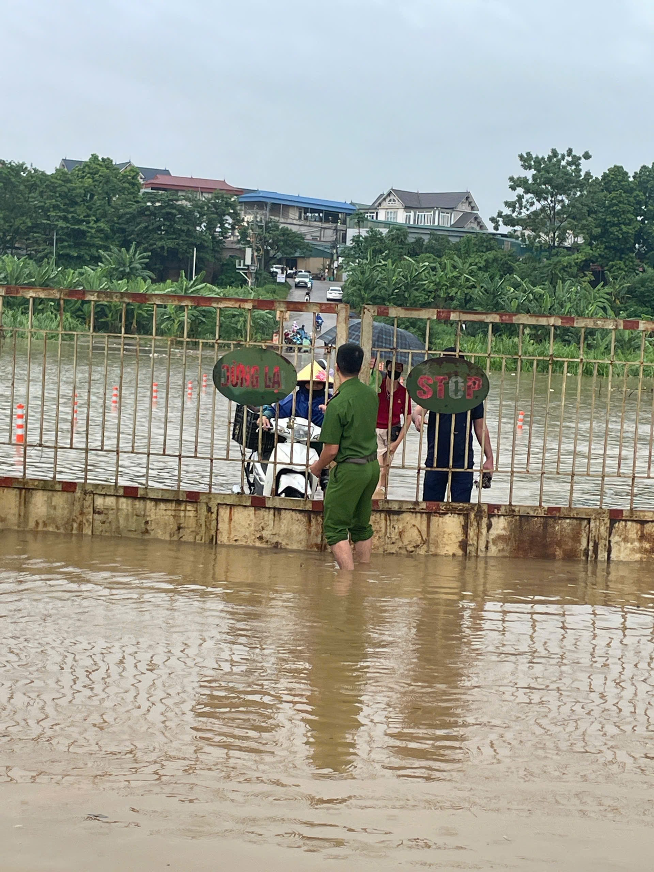 Cán bộ, chiến sĩ tập trung phân luồng, ngăn chặn người dân vượt ngầm tràn, đồng thời tích cực tuyên truyền, hướng dẫn bà con chấp hành nghiêm quy định phòng chống thiên tai. Song song đó, lực lượng công an còn hỗ trợ vận chuyển nhu yếu phẩm, giúp dân thu hoạch hoa màu để giảm thiểu thiệt hại.