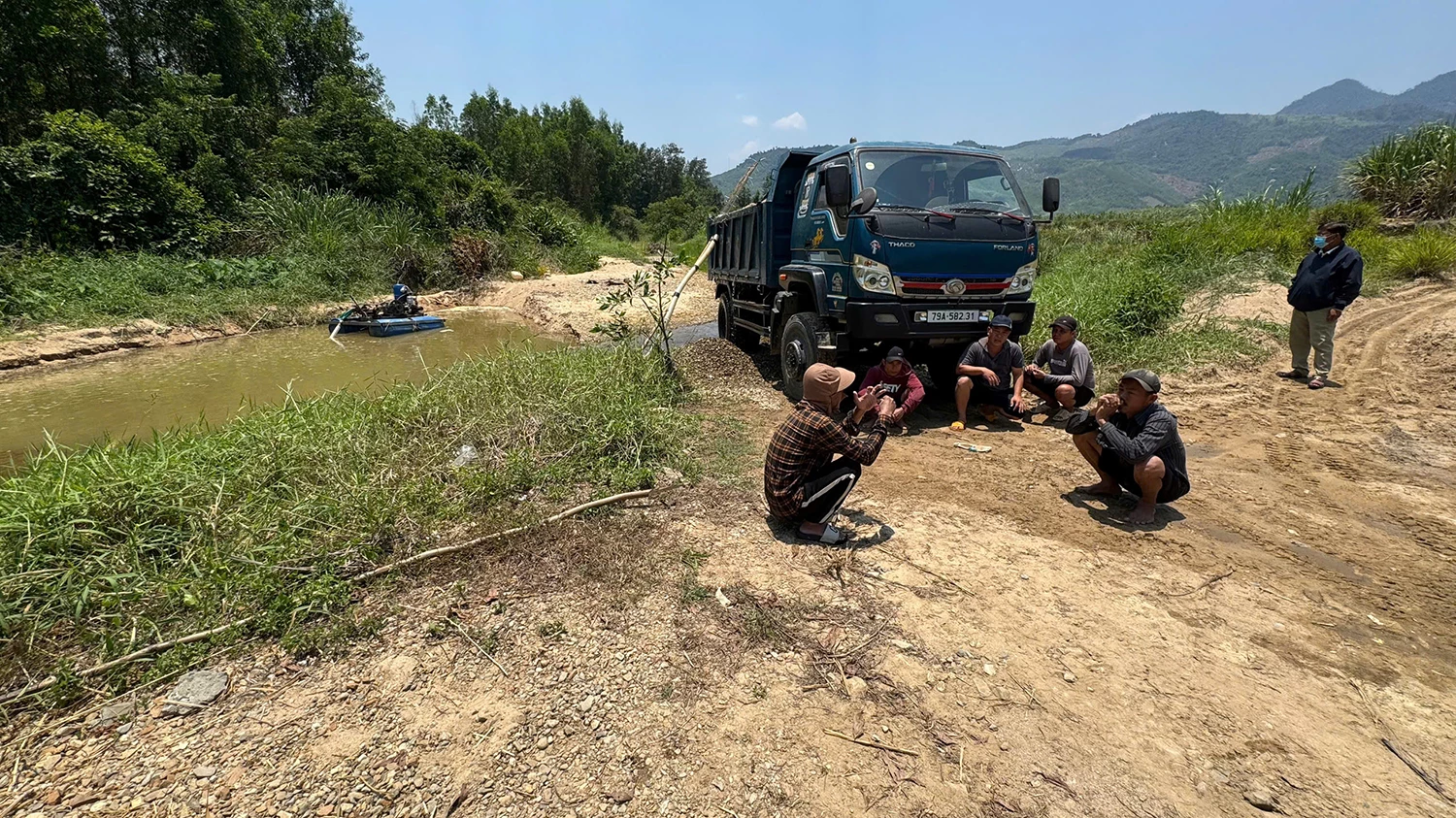 Nhóm đối tượng bơm hút cát tại khu vực Suối Cát, thôn Suối Sâu, xã Nam Ninh Hòa. Ảnh: Công an xã Nam Ninh Hòa cung cấp