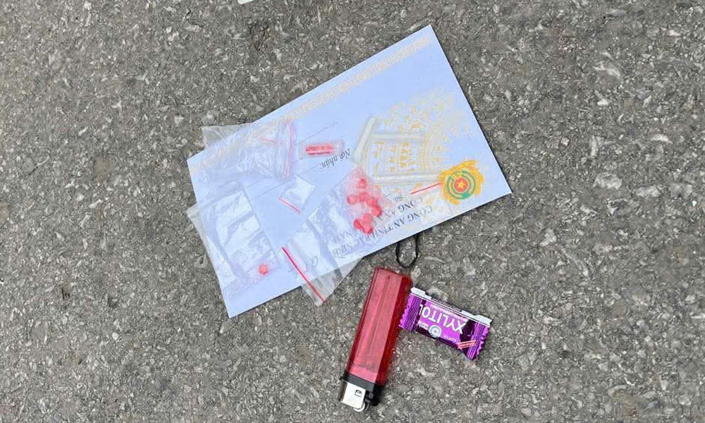 Lực lượng công an tiến hành kiểm tra, phát hiện Nguyễn Thị Hải tàng trữ 14 viên nén màu hồng và tinh thể màu trắng xác định là ma túy tổng hợp.