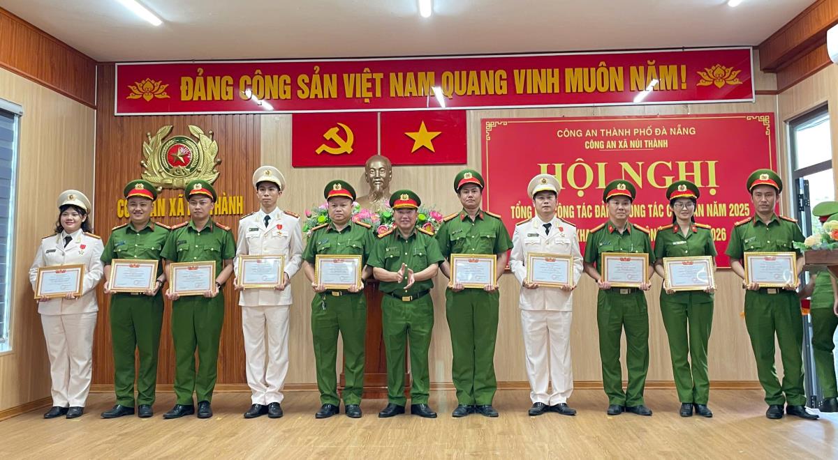 Giám đốc Công an TP Đà Nẵng tặng danh hiệu “Chiến sĩ thi đua cơ sở” năm 2025 cho 10 cá nhân thuộc CAX Núi Thành đã có thành tích xuất trong thực hiện phong trào thi đua “Vì an ninh Tổ quốc” năm 2025. Đảng ủy, UBND xã Núi Thành tặng Giấy khen cho Đảng bộ CAX “Hoàn thành xuất sắc nhiệm vụ” năm 2025 và nhiều tập thể, cá nhân thuộc CAX có thành tích xuất sắc trong công tác đảm bảo ANTT năm 2025. Đảng ủy Công an xã tặng Giấy khen cho 1 chi bộ và 7 đảng viên “hoàn thành xuất sắc nhiệm vụ” năm 2025.
