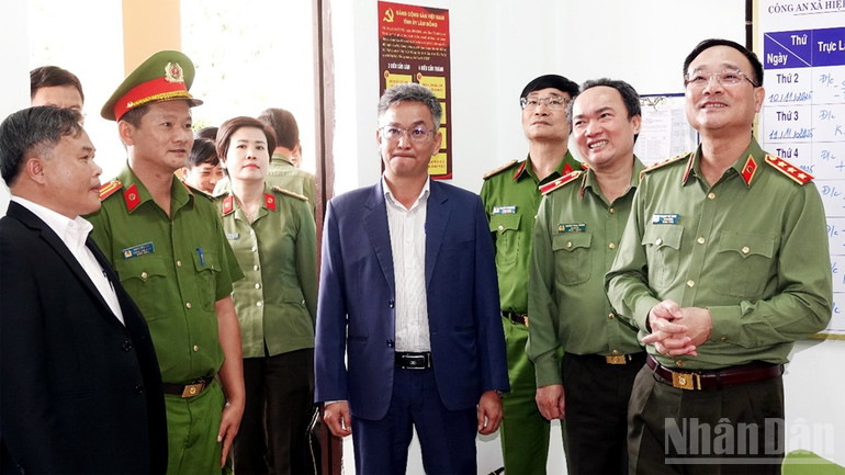Thượng tướng Phạm Thế Tùng, Thứ trưởng Công an và Đoàn công tác thăm và làm việc tại Công an xã Hiệp Thạnh, tỉnh Lâm Đồng.