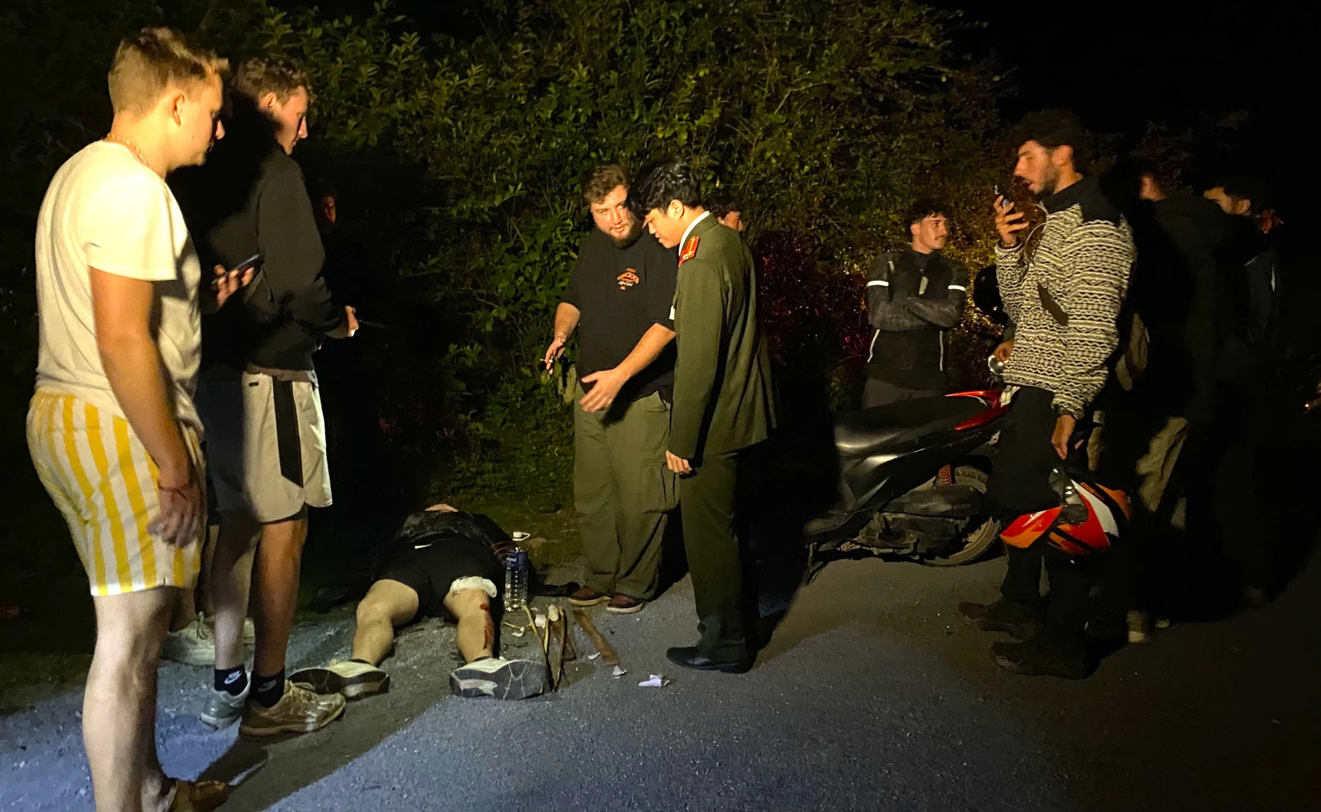 Cụ thể, vào khoảng 19 giờ tối 13/2, nhận được thông tin có nhóm du khách nước ngoài bị ngã xe máy khi đang di chuyển trên đường 20 Quyết Thắng, Công an xã Phong Nha đã nhanh chóng có mặt tại hiện trường và xác định nạn nhân là anh Nikola Gerseau (SN 1997, quốc tịch Bỉ).