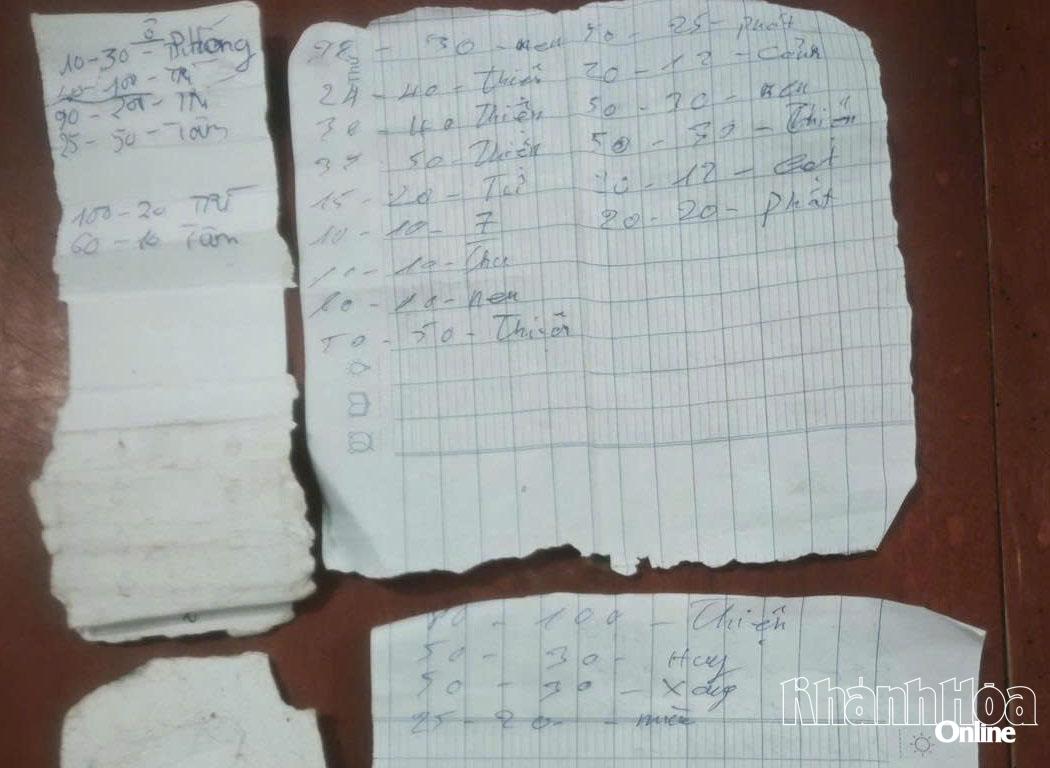 Tang vật thể hiện tỷ lệ thắng thua của các đối tượng tham gia đá gà cá cược.