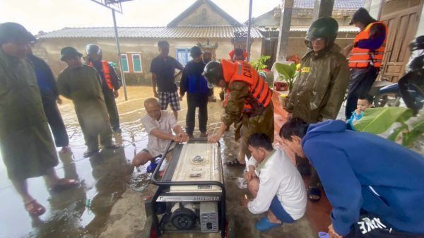 Ngay trong sáng nay 30/10, Công an các xã, phường vùng ngập đã nhanh chóng triển khai. Các đơn vị tận dụng máy phát điện sẵn có, đồng thời tham mưu chính quyền địa phương huy động, vận động thêm máy phát điện từ người dân, cơ sở kinh doanh và hỗ trợ cấp dầu để các “trạm sạc 0 đồng” hoạt động liên tục.
