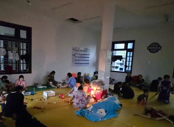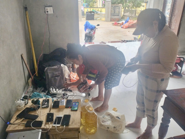Công an phường Vỹ Dạ cho người dân mượn sạc dự phòng và bố trí điểm sạc tại nhà sinh hoạt cộng đồng vào tối 29/10.