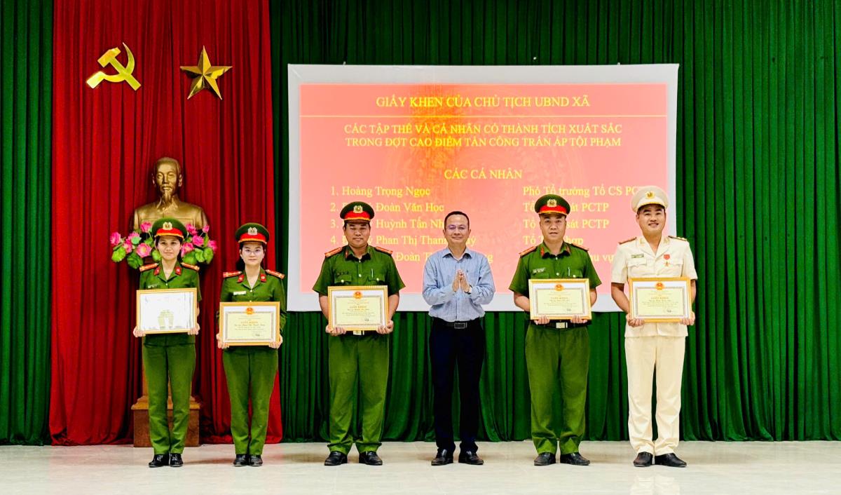 Giám đốc Công an thành phố tặng danh hiệu “Chiến sĩ thi đua cơ sở” năm 2025 cho 10 cá nhân thuộc Công an xã Tam Xuân đã có thành tích xuất trong thực hiện phong trào thi đua “Vì an ninh Tổ quốc” năm 2025. Chủ tịch UBND xã Tam Xuân tặng Giấy khen cho tập thể Công an xã Tam Xuân và 6 cá nhân đạt thành tích xuất sắc trong thực hiện nhiệm vụ đảm bảo ANTT tại địa bàn năm 2025.