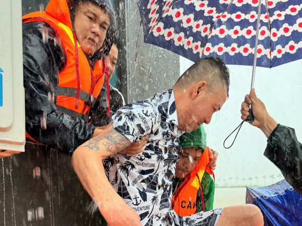 Một trong 3 người bệnh lưu trú tại căn nhà bị lũ lụt bủa vây được cứu nạn.