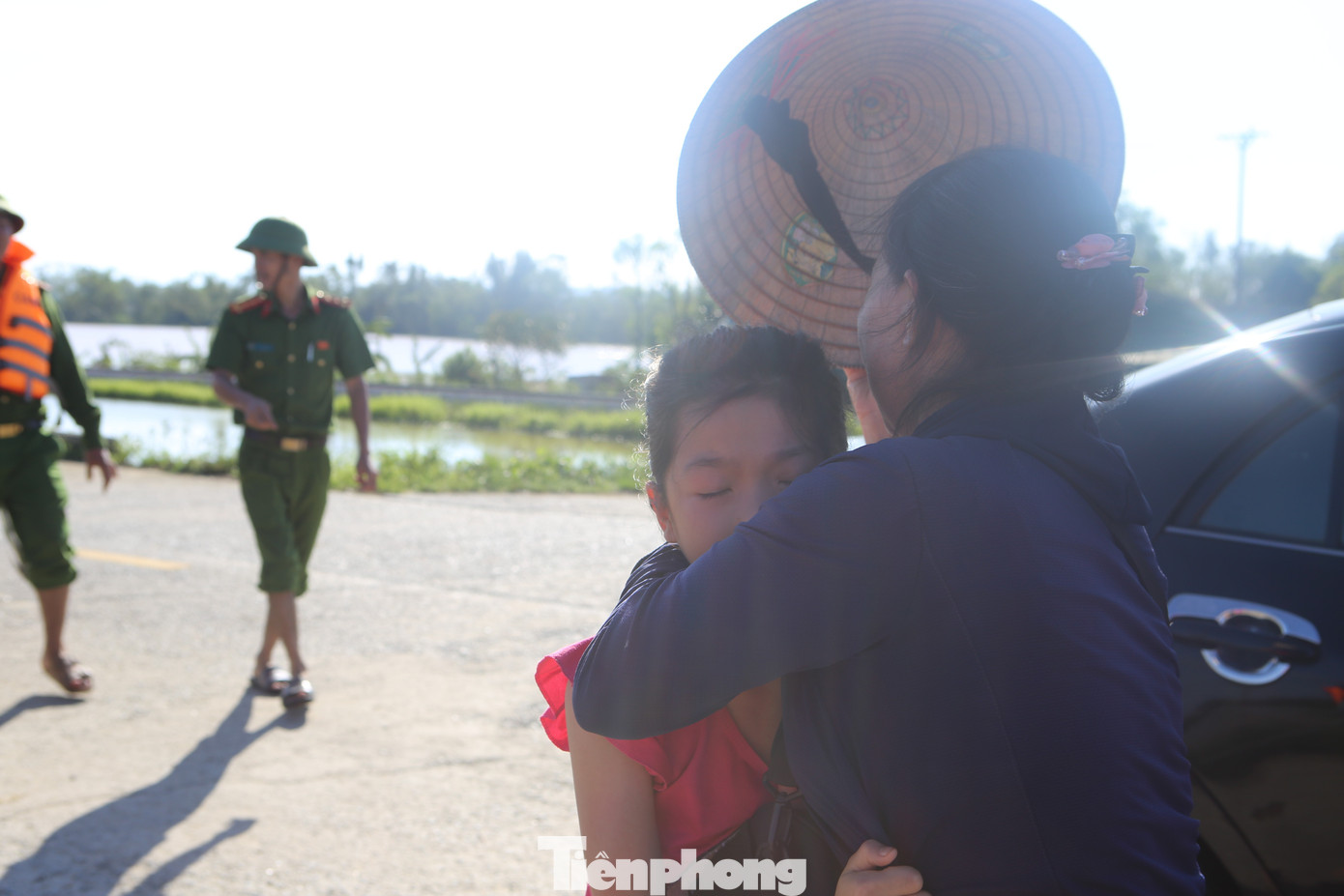 Đến đoạn đường nước không ngập, do cháu bé sợ đi ô tô, người bà phải tiếp tục động viên để cháu an tâm.