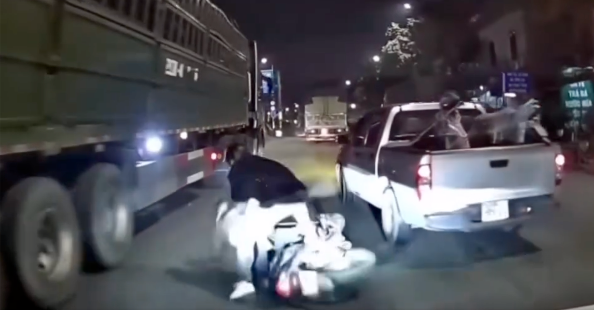 Trước đó, một đoạn clip dài 27 giây, được ghi vào hồi 21h15 ngày 27/2, cho thấy cảnh một ô tô bán tải màu ghi xám (chưa rõ biển kiểm soát) đang lưu thông thì bất ngờ “tạt đầu”, khiến người đi trên xe máy (chưa rõ biển kiểm soát) ngã xuống đường. Thời điểm xảy ra sự việc, trên xe máy có ba người, gồm: một người phụ nữ điều khiển xe, một người đàn ông ngồi sau và một trẻ em.