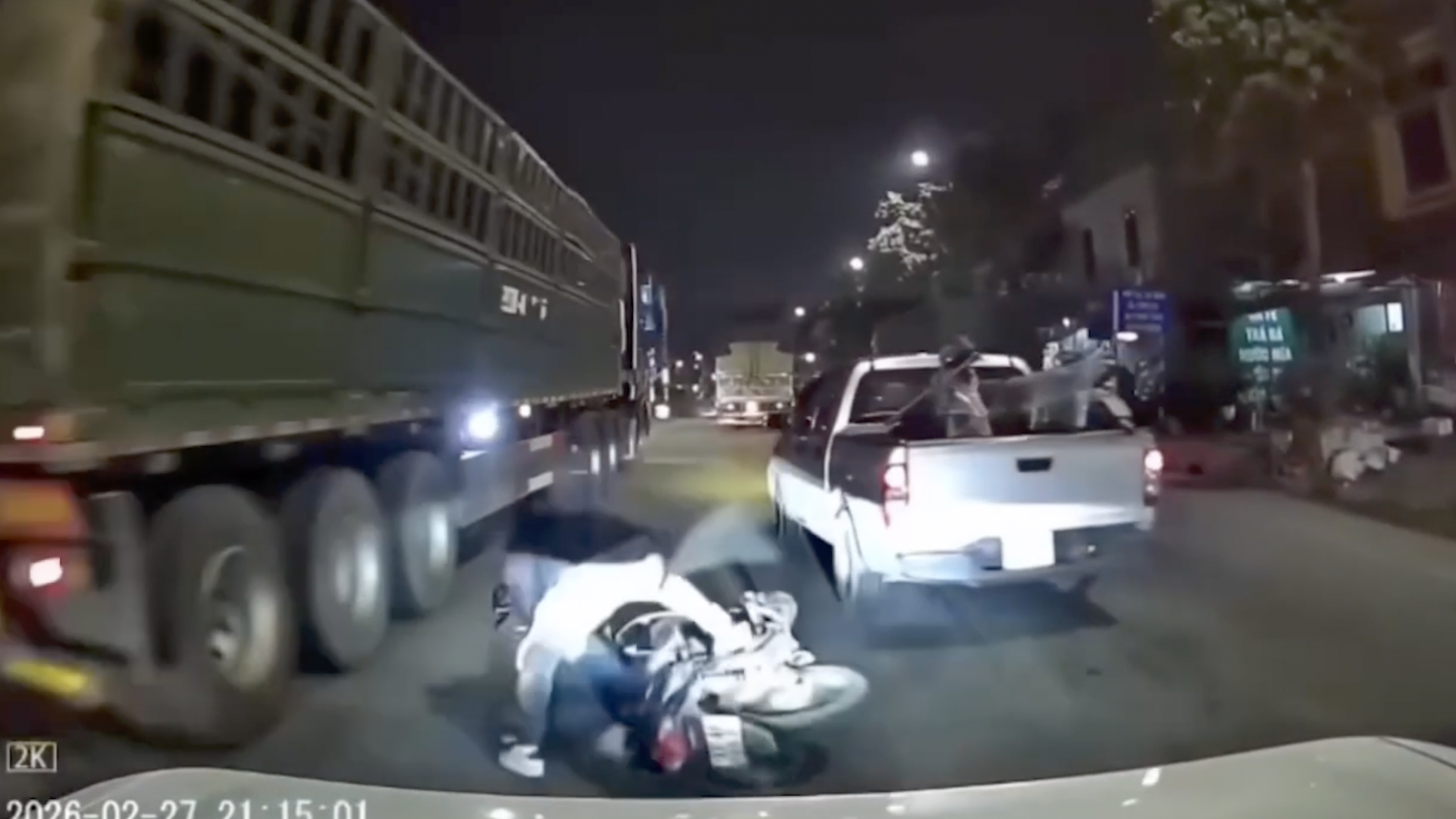 Theo clip chia sẻ, sự việc xảy ra tối 27-2, tại Hà Nội. Trên xe máy thời điểm bị ngã có 3 người, gồm 2 người lớn và 1 trẻ em.