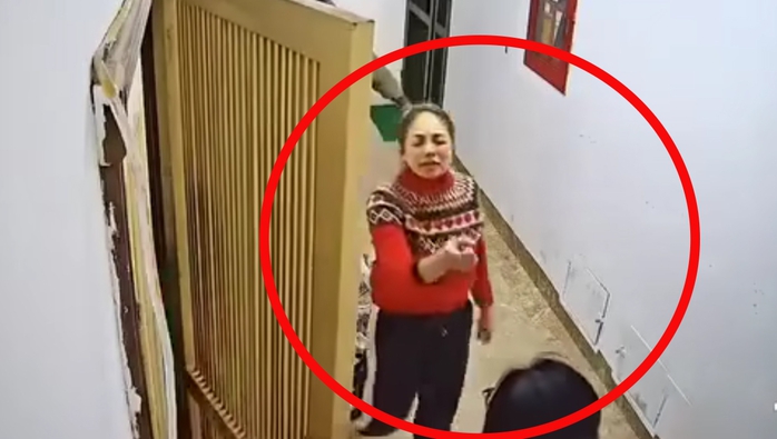Chị H. bị hành hung tại hành lang chung cư. Ảnh: Chụp màn hình