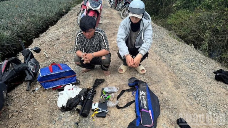 Lực lượng chức năng đã chặn dừng kiểm tra và phát hiện 2 đối tượng này mang theo một vật màu đen giống súng (có kiểu dáng giống súng nén khí) và 133 viên đạn chì cùng một số tang vật liên quan.