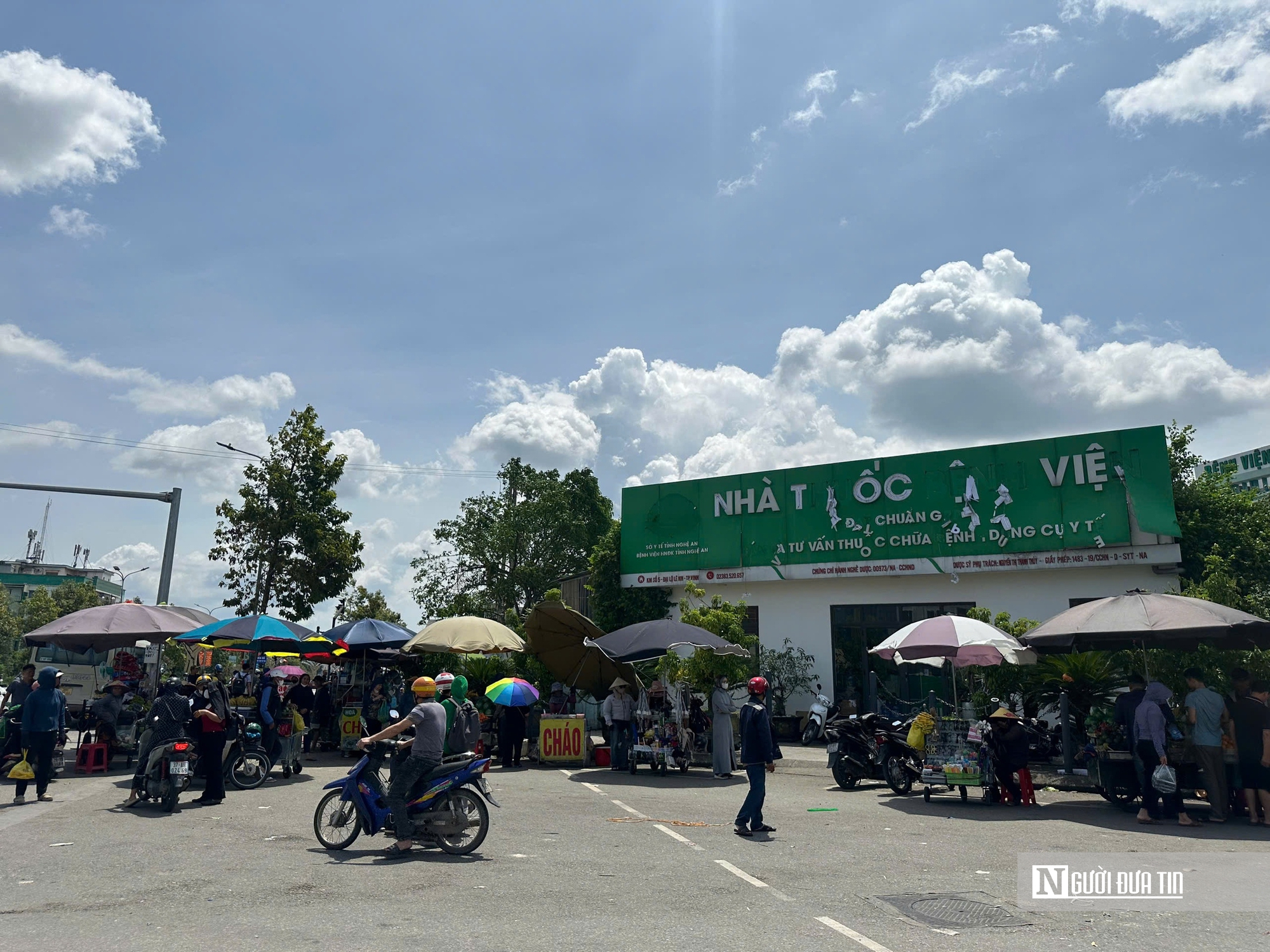 Thế nhưng, ngay trước cổng bệnh viện, rác thải từ hoạt động buôn bán nhỏ lẻ xả bừa bãi. Vào giờ cao điểm, lượng người và phương tiện dồn về khu vực này rất đông khiến ùn tắc xảy ra thường xuyên, tiềm ẩn nguy cơ tai nạn giao thông.