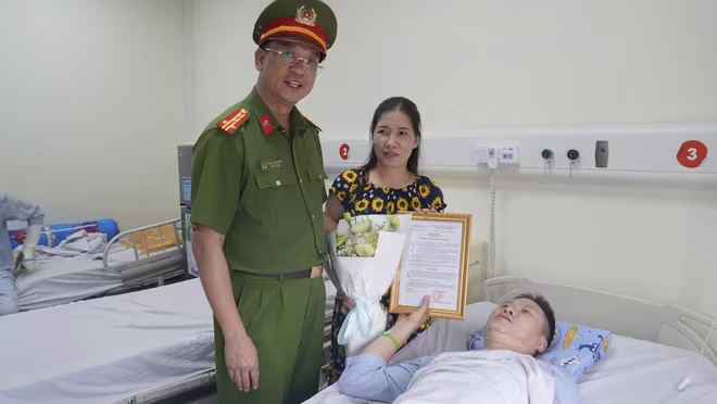 Thừa ủy quyền của Ban giám đốc CATP, Đại tá Phạm Trung Hiếu, Trưởng phòng Cảnh sát PCCC&CNCH, CATP trao quyết định bổ nhiệm chức vụ Đội trưởng cho đồng chí Trung tá Nguyễn Duy Mạnh, bị thương khi làm nhiệm vụ và đang điều trị tại Bệnh viện Quân y 103