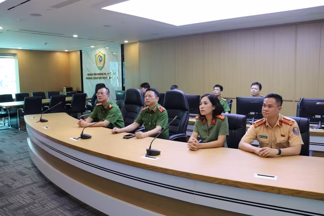 Đại tá Phạm Trung Hiếu, Trưởng phòng Cảnh sát PCCC&CNCH, CATP báo cáo các thông tin về Trung tâm Thông tin chỉ huy của Phòng Cảnh sát PCCC&CNCH