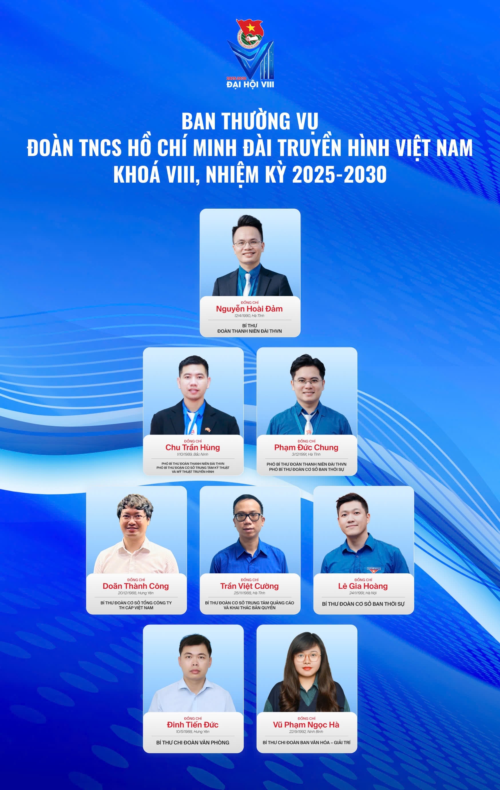 Danh sách Ban Thường vụ Đoàn Thanh niên VTV nhiệm kỳ 2025-2030.