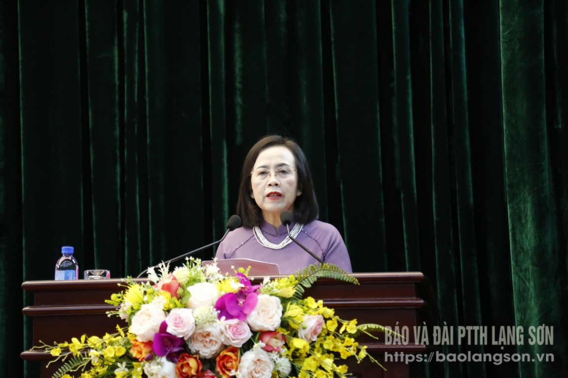 Đồng chí Đoàn Thị Hậu, Phó Bí thư Thường trực Tỉnh ủy, Chủ tịch HĐND tỉnh phát biểu giao nhiệm vụ tại hội nghị