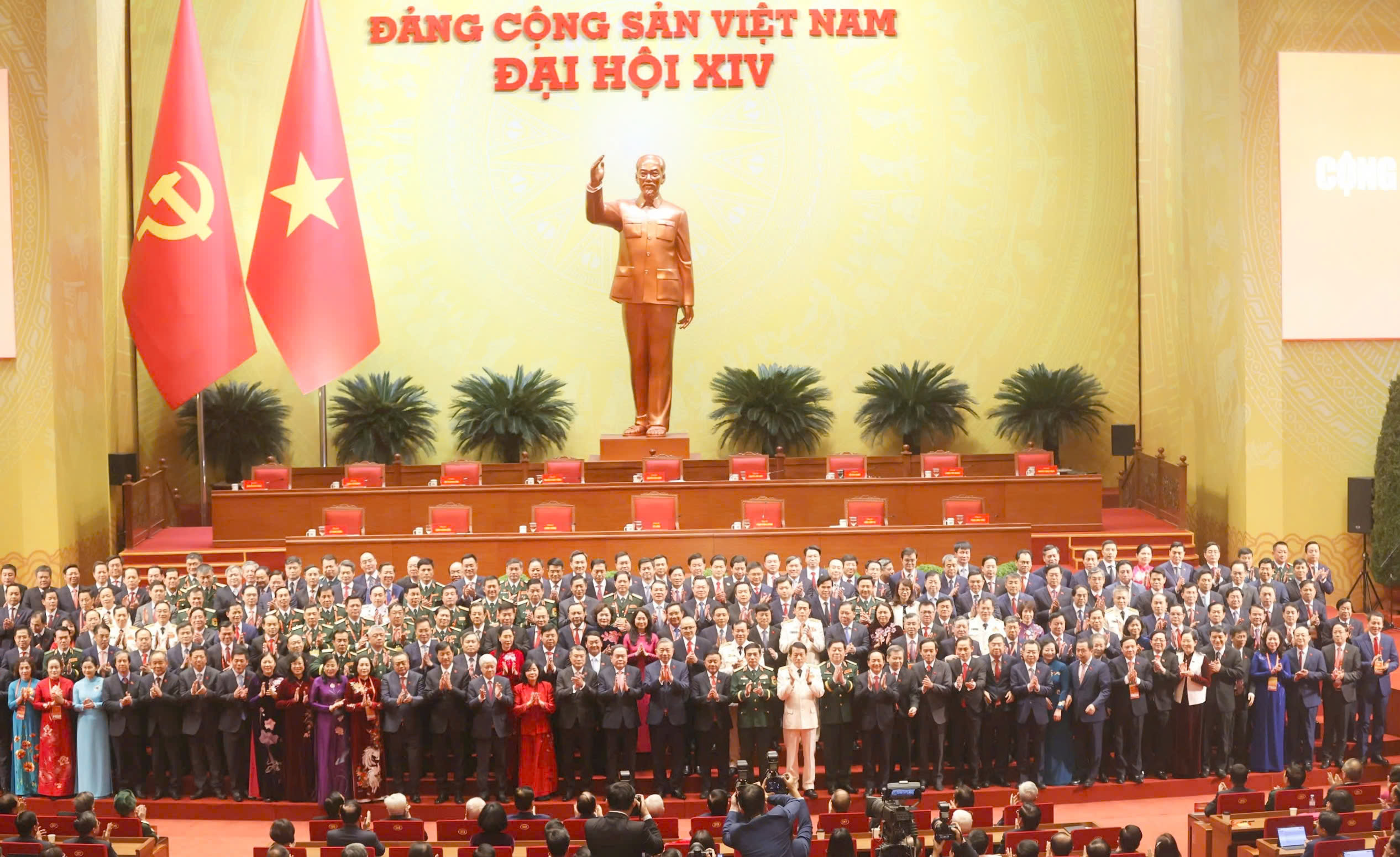 Ban Chấp hành Trung ương Đảng khóa XIV ra mắt Đại hội. Ảnh: VIẾT CHUNG